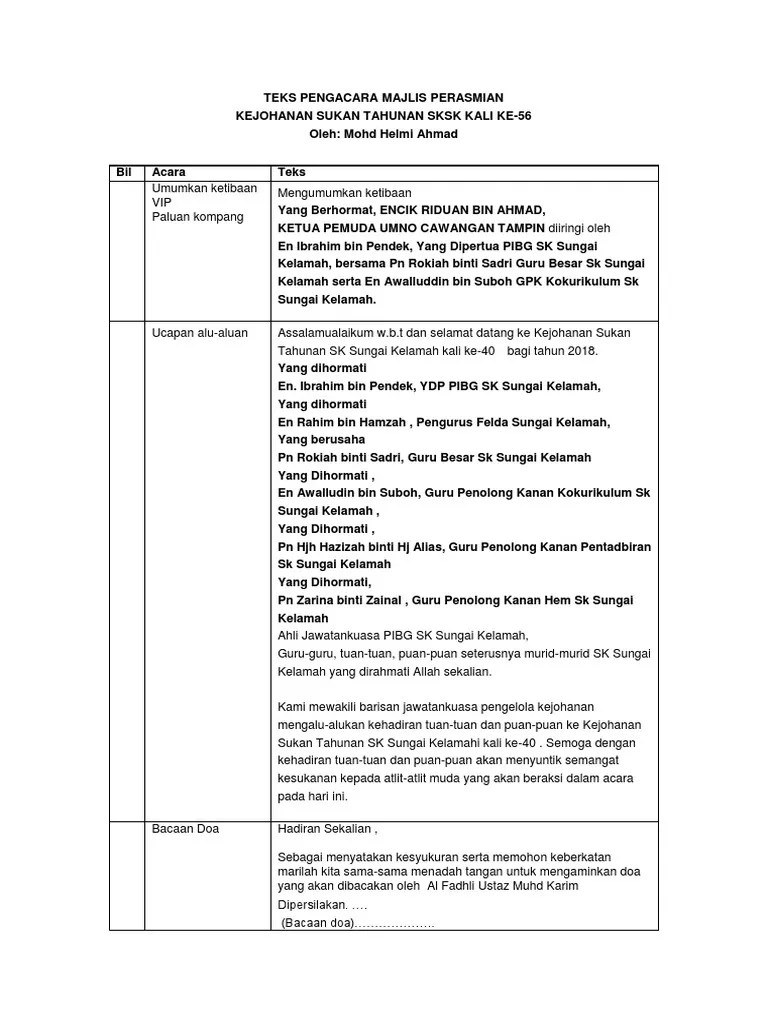 Teks Pengacara Majlis Rasmi Kerajaan / Teks Mc Formal Majlis Pembukaan Persamian. A4.4 teknologi maklumat dan komunikasi (tmk) d2 tugasan tambahan. Teks pengacara majlis hari kecemerlangan sekolah. Majlis yang melibatkan pembesar negara/negeri dan menepati aspek protokol secara penuh.