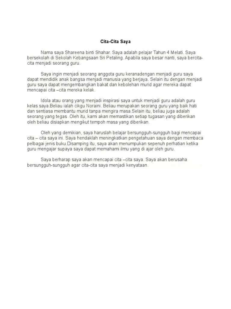 Contoh karangan bahasa arab tentang cita cita menjadi guru teaching . Contextual translation of karangan tentang cita cita saya menjadi peguam into english.
